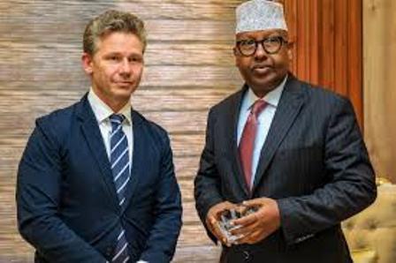 التقى وزير الدفاع في الحكومة الفيدرالية الصومالية، أحمد معلم فقي نظيره السويدي بول جونسون، يوم أمس الأول الثلاثاء إلى العاصمة الصومالية مقديشو. وناقش الوزيران خلال اجتماعهما تعزيز التعاون بين الصومال والسويد وخاصة في مجالات الأمن ومكافحة الجماعات الإرهابية. وكشف بيان صادر عن وزارة الدفاع الصومالية أن الوزير فقي شكر الحكومة السويدية على مساعداتها المختلفة للصومال، مشيرا إلى أن العلاقة بين البلدين قائمة على التعاون الودي والمصلحة المشتركة لتحقيق الاستقرار في المنطقة. من جانبه، أشاد وزير الدفاع السويدي بجهود الحكومة الفيدرالية الصومالية في إرساء السلام ونجاحاتها في مكافحة الجماعات الإرهابية، متعهدا بمواصلة بلاده دعم وتطوير مهارات الجيش الصومالي.