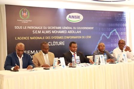 اختتمت يوم امس الاحد في فندق الشيراتون فعاليات الأسبوع التوعوي للأمن السيبراني ، وجرت وقائع الحفل بحضور وزير الداخلية السيد/ سعيد نوح حسن ،ووزير الميزانية السيد/ عثمان إبراهيم روبله،وامين عام الحكومة السيد/ الميس محمد عبد الله ، وامين عام وزارة الاعلام المكلف بالبريد والاتصالات السيد/ احمد يوسف علمي، ومدير عام الوكالة الوطنية لنظم المعلومات التابعة للدولة السيد/ مصطفي محمد اسماعيل ، ومدير عام شركة جيبوتي تليكوم السيد/ محمد عسوه بوح ، كما شارك في هذا الاجتماع العديد من كبار الكوادر في مجال تقنية المعلومات والاتصالات من القطاع الحكومي والقطاع الخاص ومؤسسات إنفاذ القانون بما في ذلك الدرك الوطني والبنك المركزي والأمانة العامة للحكومة ،