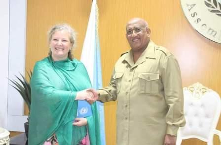 وفي ختام هذه السلسلة من المقابلات، استقبل السيد/ دليتا محمد دليتا، الممثلة المقيمة لصندوق الأمم المتحدة لرعاية الطفولة «اليونسيف» السيدة/ بيت داستيل، والتي هنأته على انتخابه لرئاسة الجمعية الوطنية.