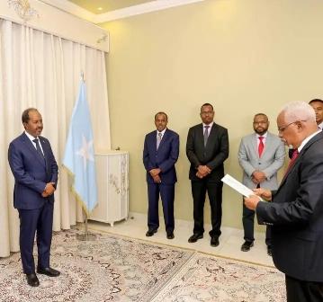 كما تمنى الرئيس حسن شيخ محمود لسعادة السفير التوفيق في مهام عمله، المتمثلة في تطوير العلاقات الثنائية وتعزيزها في مختلف المجالات،مؤكداً استعداد بلاده لتقديم كل دعم ممكن لتسهيل مهامه.