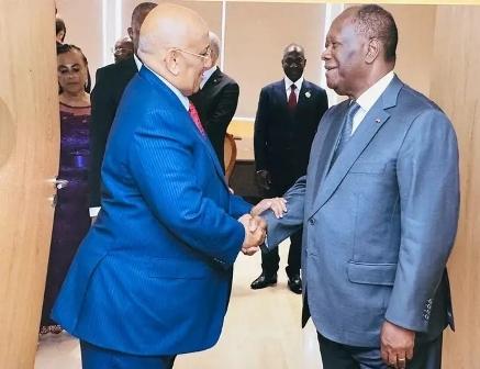 استقبل رئيس ساحل العاج السيد/الحسن واتارا،يوم أمس الأول الثلاثاء رئيس الجمعية الوطنية السيد/دليتا محمد دليتا،ضمن وفود من رؤساء برلمانات منطقة إفريقيا بالجمعية البرلمانية الفرنكونونية،