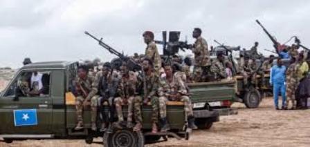 أطلق الجيش الوطني الصومالي، بدعم من قوات الدفاع الشعبية المعروفة باسم «معوسلي»، أمس الأول الثلاثاء، عملية عسكرية جديدة ضد مسلحي حركة «الشباب» الإرهابية في منطقة شبيلي الوسطى، بولاية هيرشبيلي. وأكد مسؤولون عسكريون يقودون العملية أن الحملة، التي أطلق عليها اسم «العاصفة الخفية»، مصممة لتكون حملة منسقة بعناية لاستعادة المناطق التي لا تزال تحت سيطرة المسلحين. وأعلنت الحكومة الفيدرالية الصومالية أن هذه الموجة الجديدة من العمليات تمثل بداية استراتيجية أوسع نطاقاً ضد حركة «الشباب»، وحثت على التزام الوحدة، مشيرة إلى أن الجهود المشتركة للجيش الوطني الصومالي ومقاتلي المجتمع المحلي ستكون حاسمة في تحرير المناطق المتبقية تحت سيطرة حركة «الشباب». وكان الجيش الصومالي، أعلن الاثنين المنصرم، مقتل 100 عنصر إرهابي خلال عملية عسكرية بمديرية أوطيغلي شبيلي السفلى جنوبي البلاد. وذكرت وكالة الأنباء الصومالية الرسمية (صونا) أن قوات «دنب» الخاصة التابعة للجيش الوطني، نفذت بالتعاون مع شركاء دوليين، عملية عسكرية ضد إرهابيين في مديرية أوطيغلي شبيلي السفلى، أسفرت عن مقتل 100 عنصر إرهابي.
